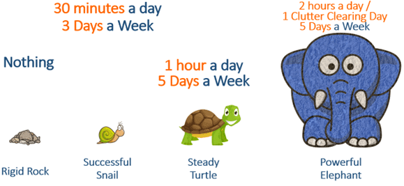 On our Clutter Clearing Journey we talk about being a rock, snail, turtle, or Elephant. This simply refers to how much time and how frequently we are spending time ‘Doing the Doing’ of watching and following our Clutter Clearing Journey videos, which helps us to manage our expectations. To make progress and start building the…